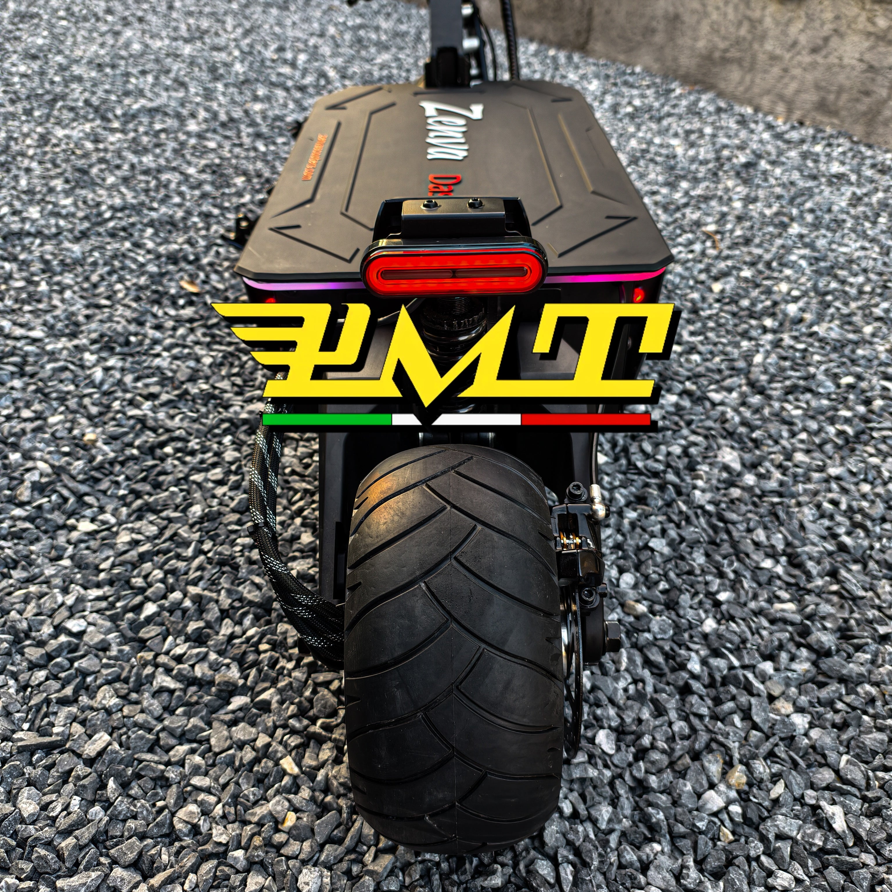 Our scooters are equipped with PMT tires made in Italy, in size 130-40-6.5, designed for road use and high performance. PMT is the best tire brand for electric scooters, offering the most premium tires in the world.